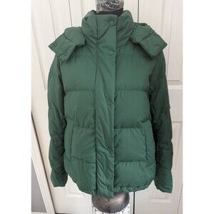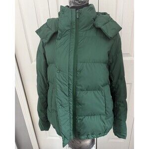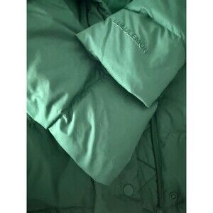 The Lululemon Puffer Jacket in women's size 4 is a stylish and functional winter coat that features a hood for added warmth. Made with polyester outer shell and lined with polyester, this short-length jacket is perfect for outdoor activities in the winter and fall seasons. The jacket offers a relaxed fit with a full zip closure and multiple pockets for convenience. The green color and solid pattern give it a chic look, while the goose down insulation provides extra comfort in cold weather conditions. Easy to care for with machine washable fabric, this puffer jacket by Lululemon is a versatile and trendy addition to any wardrobe. Measures 16 shoulders, 20 chest and 23 length. Really cute and like new condition.