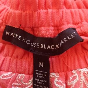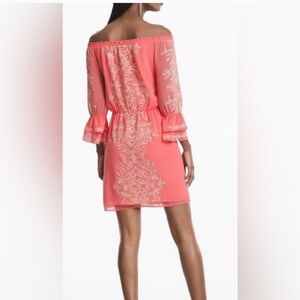 White House Black Market Gold Metallic Embroidered Coral Boho Off Shoulder Dress