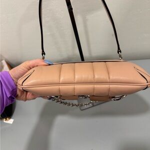 Chic Gucci shoulder bag in a soft peach hue. Features a stylish silver chain accent. Perfect for elevating any look. So stunning excellent condition. Comes with box and dust bag.