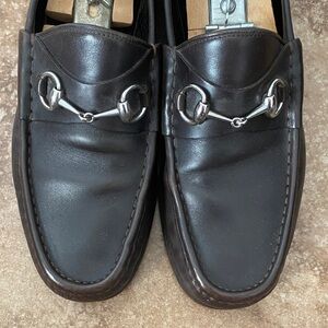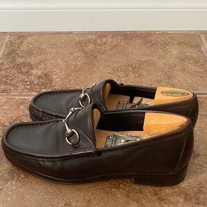 Gucci Dark Brown Leather Loafers with Silver Accents