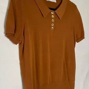 Zara Button Up Women's Polo Shirt Knit Size Medium Brown