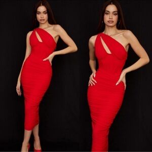 NWOT House of CB Valentina Scarlet Red Cutout Midi Dress sz XS