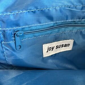 New Without Tags. Joy Susan blue starfish tote bag with nautical rope handles. Full zipper enclosure at top. Lined in light blue with interior pockets, one that zips. Measures 15 1/2” W, 13” H X 5” W.