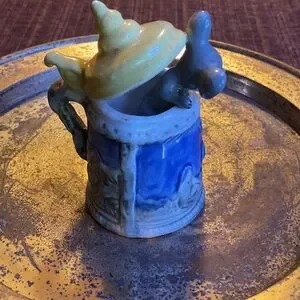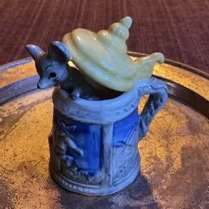 Charming ceramic mug featuring a playful mouse design. Comes with a decorative lid. Perfect for collectors or as a unique gift.