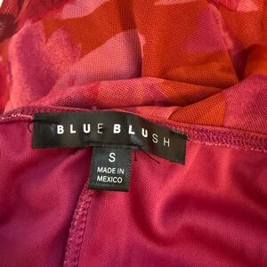 Vibrant red dress with mesh overlay. Stylish and bold design.