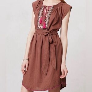 Anthropologie Maeve Brown Embroidered Mini Dress size 4