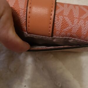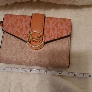 Elegant Michael Kors wallet with a pink design. Features signature logo detail. Ideal for everyday use.