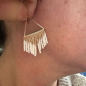 Elegant Gold and White Beaded Earrings Handmade