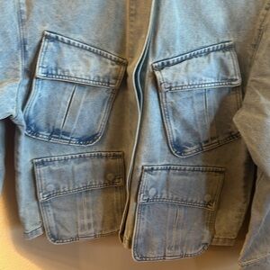 Veveret Denim Utility Jean Jacket Size Medium Light Wash Oversized Cargo Pockets