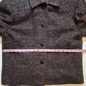 Add a pop of sophisticated color to your office wardrobe with this elegant Talbots tweed blazer. This jacket features a beautiful textured weave with shades of purple, plum, and subtle neutral undertones, creating a rich, dimensioned look.