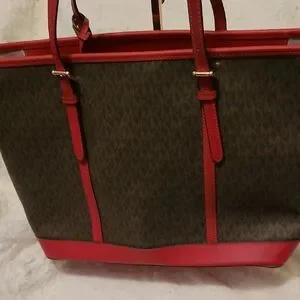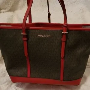 Elegant Michael Kors tote with red accents. Perfect for daily essentials. Stylish and versatile.