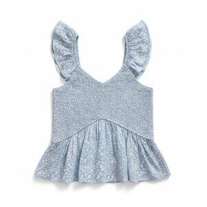 Art Class Little Girls Blue Ruffle Smocked Tank Top Peplum Hem Large (10-12)