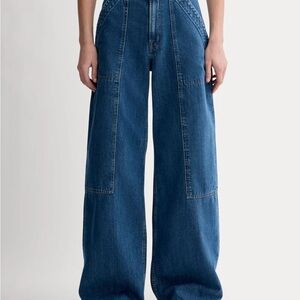 Everlane carpenter pants. Mid blue denim. They have some stretch in them, so they could possibly fit a 29-30.