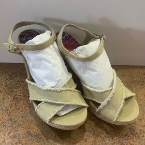 K9 by Rocket Dog Espadrille Wedge Sandals Tweed Canvas Ankle Strap 9.5 New