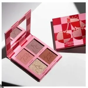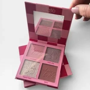 The Ciate Makeup Ciate London Cherry Bomb Highlighter And Blush Palette is a palette that includes two plush creamy matte blushers and two illuminating highlighters. The blushers are in a cool pink and warm rose shade, and the highlighters are infused with golden pearls. The palette is cruelty-free and has a delicate cherry fragrance.