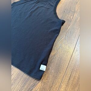 The Vuori Women's Sleeveless Tank Top in Black, size Small, is a lightweight and comfortable activewear piece perfect for yoga or other active pursuits. Made from a polyester blend material, this tank features a solid pattern, a crew neck neckline, and a pullover closure for easy wear. The relaxed fit and stretch features make it versatile for different activities, while the sleek black color adds a stylish touch to your workout wardrobe.