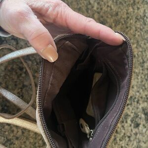 Elegant cream crossbody bag by BED|STU. Features a textured finish and adjustable strap.