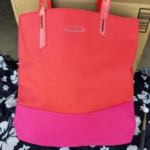 Lancome Makeup Orange and Pink Lined Large Canvas Tote Bag