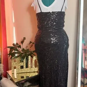 Elegant black sequin evening gown. Perfect for formal occasions.