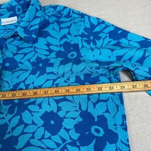 Jaclyn Smith Plus Blue Floral Coastal Beachy Button Down Shirt linen vacation