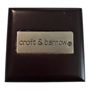 NWOT VTG Croft And Barrow Square Gold Silver Tone Tie Tack W Chain In Wooden Box