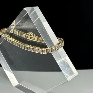 This stunning bracelet is crafted in 14k gold and features fifty-one natural diamonds, making it a timeless piece for any occasion. Its elegant design adds a refined touch to any jewelry collection. The bracelet was taken to a jewelry professional for a price estimate and was highly praised for its quality and beauty. Size 6.5 and weighs 15.1 grams.