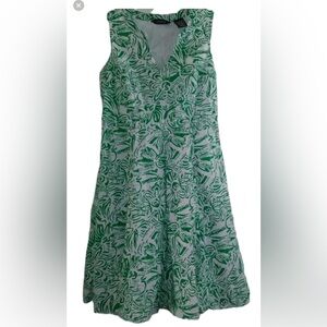 George Green Floral Print V Neck Sleeveless Belted Dress - Size 12