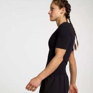 NWT CALIA Seamless Crop Elbow Tee | Pure Ebony | Size S