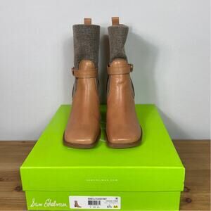 New Sam Edelmam Marci Bootie in LT Cuoio /Knit Women's Size 6.5