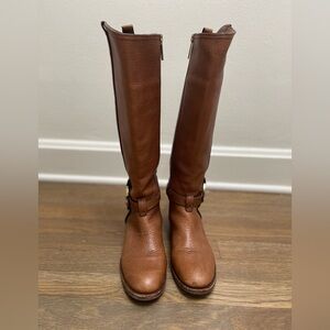 Tory Burch Amanda Brown Heeled Pebble Leather Riding Boots Sz-7.5
