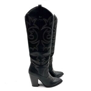Steve Madden Linconn Boots Black Faux Leather Knee Cowboy Western Heel Sz 8