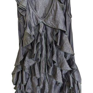 Zokai Blouse Purple Womens M NEW Ruffle Tiered Front Sleeveless Coquette Shimmer