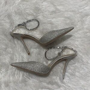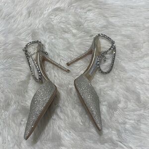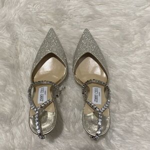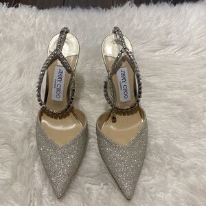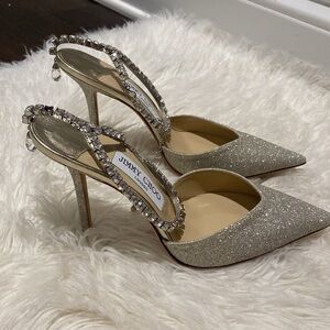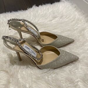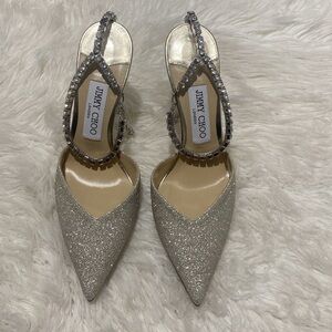 New Jimmy Choo Saeda 100 Platinum Ice dusty glitter pumps size 38EU