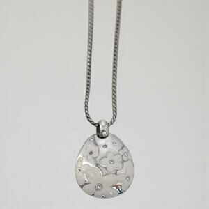 Reversible teardrop pendant with floral detailing on both sides for versatile wear