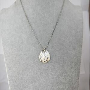 Brighton Teardrop Daisy Enamel Pendant Necklace Silver Plated Retired Design