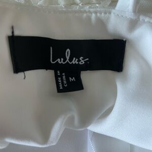 Delightful Charisma White Embroidered Sequin Mesh Midi Dress Medium. Adjustable straps. In excellent condition with no visible signs of wear. Great for a wedding look or wedding reception.