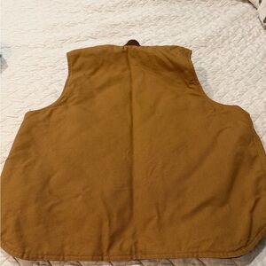 Durable Carhartt vest in tan. Ideal for outdoor work. Features sturdy construction and practical pockets.