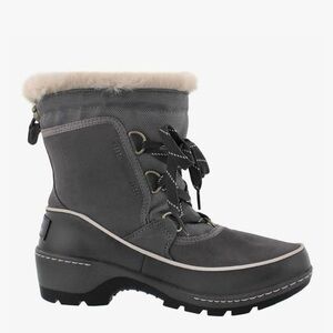 Sorel Slimpack II Lace. Soft nubuck pairs with a rugged waterproof rubber shell on these timeless, utilitarian Sorel boots. ThermoPlus lining is trimmed with plush faux fur, and D-ring hardware accents the lace-up closure. Lug sole. Serious winter boots. Quarry Grey. Size 8. Great/excellent Used Condition GUC. Materials: genuine suede leather lower rubber lug sole Measures: approximate Shaft height, 8 Inches Shaft circumference, 14 Inches Manufacturer Detail: These boots make winter outings easier with premium winterproof details and waterproof construction. UPPER: Waterproof suede upper with PU coated leather mudguard and heel overlay. Canvas tongue. Faux fur collar with microfleece lining. OutDry waterproof construction. INSULATION: 200g insulation. FOOTBED: EVA footbed with microfleece topcover. MIDSOLE: Rubber. OUTSOLE: Molded rubber outsole. HEEL HEIGHT: 11/4 in. PLATFORM HEIGHT: 3/4 in. $Stack up on Style and Save! Bundle three items or more from our closet and receive an automatic 20% discount at checkout. Conditions Apply: Bundle discounts apply to Regularly Priced Items. Bundle discounts not combined with other offers or promotions. B049-2728