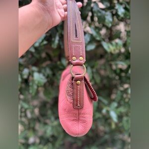 Authentic Coach Soho shoulder bag in a gorgeous punch pink leather with brass stud detailing and signature oversized buckle closure. Classic early-2000s Y2K style that’s super trendy right now.