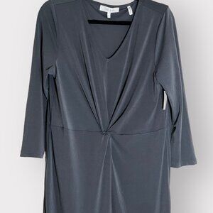 Lark & Ro Size 14 NEW Gray 3/4 Sleeve V-Neck Gathered Twist Front Sheath Dress