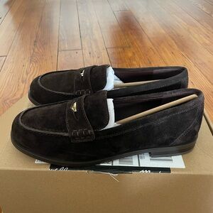 Chic dark brown suede loafers by Madewell. Sleek design with a classic touch. Ideal for versatile styling.