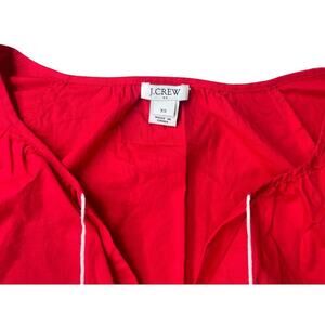 J.CREW Red Peasant Top Floral Appliqué Tassel Tie Boho Blouse - XS