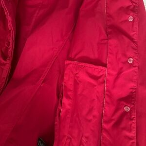 Rainforest Bold Red Hidden Hood Water Resistant Women’s Long Raincoat