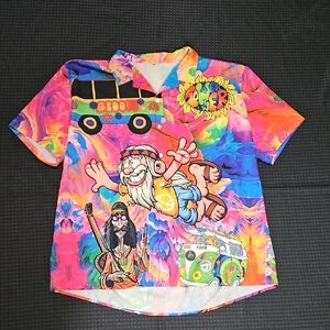 Vintage Style, 70s, Hippie, Short Sleeve Top, Size XXXL, Button Down