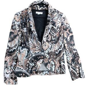 Coldwater Creek Womens Jacket Black Brown Paisley Button Collared Petite 6P