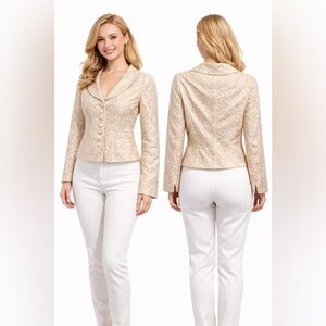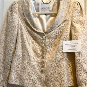 Walter Lace Blazer Jacket Cream Button Front | Size 4 | Evening Chic