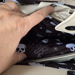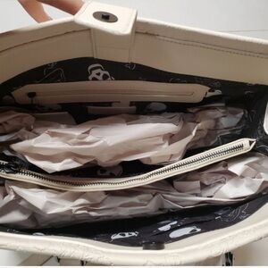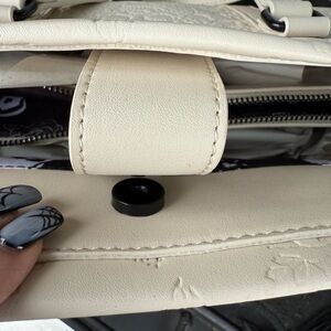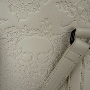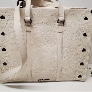 Betsey Johnson cream Halloween embossed Skull tote w Skull Keychain 2024
