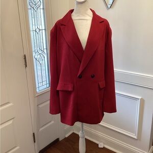 Classic Double Button Red Women’s Blazer (Color: Red) (Size: XXL)