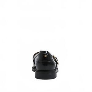 Elevate your spring wardrobe with the Sam Edelman Women's Elaina T-strap Mary Janes in timeless black leather. These shoes feature a 2.2 CM flat heel and are adorned with an oversized buckle detail for a chic minimalist look. Designed with a rounded toe, they offer a synthetic insole for added comfort. Ideal for a dinner party, pair them with rich fabrics and shortie socks to complete your stylish ensemble.