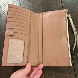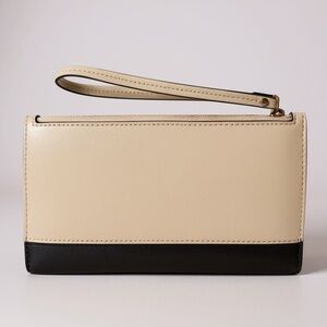 Kate Spade Two-Tone Saffiano Leather Wristlet Wallet Beige Black